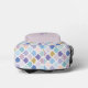 Custom pastel mermaid backpack for girls features a playful scale pattern in soft shades of lavender, mint, peach, and blue with faux gold glitter accents that create a dreamy, ocean-inspired vibe. The front pocket showcases a cute illustrated mermaid alongside a space for personalised name customisation in stylish purple script, adding a charming and one-of-a-kind touch. Perfect for kids who adore mermaids, fantasy themes, or magical undersea adventures, this personalised backpack blends elegance with fun in a unique design ideal for school, travel, or everyday use. Its colourful scale motif and sparkling gold details make it a standout choice for girls who love whimsical accessories.