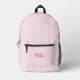 Personalised pink lines girls Printed Backpack.Add a splash of style to your little one’s daily adventures with our Personalised Pink Lines Girls Printed Backpack. Featuring a chic and modern pink stripe design, this backpack is both cute and functional — perfect for school, playdates, or travel. Personalise it with your child’s name to make it uniquely hers! With spacious compartments, adjustable straps, and durable fabric, it’s designed to keep up with her busy, colourful world in the most stylish way.