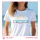 Celebrate summer, vacations, or girl’s weekend at the beach with this fun t-shirt featuring a sun and water logo, tropical colours, and customisable text. This design is minimalistic and modern, and you and your girlfriends will look great on your summer getaway. Add a name, event, place, date, or other information to create a unique gift for yourself or your friends.