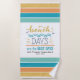 Celebrate summer, vacations, or girl’s weekend at the beach with this fun beach towel featuring a beach-themed logo, tropical colours, stripes, and customisable text. This design is minimalistic and modern, and you and your girlfriends will remember your fun summer getaway every time you reach for this towel. Add a name, event, place, date, or other information to create a unique gift for yourself or anyone.