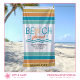 Celebrate summer vacations or a girl’s weekend getaway at the beach with this fun beach towel that features colourful typography that says, “Beach Please,” a simple illustration of a seashell and ocean waves, bold tropical coloured stripes, and four customisable text placeholders. Add a name and modify the event, location, and date to create a unique keepsake that your guests will remember every time they reach for this towel.