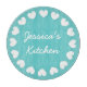 Personalised glass cutting board | Turquoise and white hearts with custom text, name or monogram. Cute gift idea for kitchen or restaurant. Beautiful design for women. Custom gift idea for chef, mother, wife or girlfriend who love cooking.