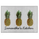 Personalised glass cutting board with fruity pineapples and custom text, name or monogram. Cute gift idea for kitchen or restaurant. Fruit food design.