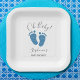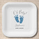Personalised Glitter Feet Blue Baby Shower Square Paper Plate