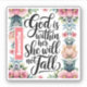 God is Within Her : Psalm 46:5 Christian sticker . A watercolor floral border in soft pinks and purples surrounds elegant gold script that reads “God Is Within Her, She Will Not Fall". personalised with name.