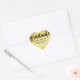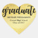 Graduate is written in a large decorative script across the top of this gold heart-shaped sticker. The graduate's name is written below it in large capital letters. Their high school, college or university is below that with their graduation year. The smooth gold background is made more decorative by a photograph of confetti sprinkled over it.