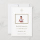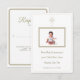 Celebrate your child's First Holy Communion with this elegant and customisable RSVP Card. The design features a gold-accented cross at the top, symbolising faith, and a central framed photo of your little one, making the card truly personal. The white background and refined gold text lend a clean and sophisticated look, while the blend of script and serif fonts adds a classic touch. Perfect for creating a cherished memory of this special occasion.