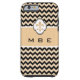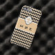 Protect your iPhone in style with this trendy yet timeless case featuring an elegant Fleur de Lis symbol in a gold and black chevron stripe design. with your initials or other text using the template. Click " it" to change the font and text placement.