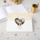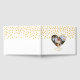 Elegant gold metallic look confetti on white Guest Book. Text and picture ready to be personalised.