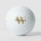 Minimalist elegant simple gold and black script custom monogram initial, letter and name, or last name, family name personalised Titleist Pro V1 Golf Balls, available in many brand options