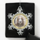 Celebrate your beloved dog's life with this personalised Christmas decoration. Decorated with a gold background covered in white snowflakes, just add your dog's name, photo, year of birth and year of passing. "You left paw prints on my heart”.