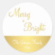 Personalised Merry and Bright gold and white round stickers with customisable text