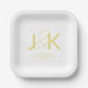 personalised wedding paper platesmodernclassicelegantgoldmonogramdesign