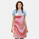 Personalised gold pink Agate apron with name in script lettering. Gold, pink and white marble geode pattern.