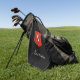 Personalised gold towel gift with classy logo. Custom golfing gift for men and women. Red shield emblem with name initial.