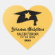 Deep gold heart sticker lets your number 1 student know how proud you are of their achievement. The graduation cap at the top has a star cutout. The graduate's name is in a bold script font. Valedictorian is written just below. The school and year follow.