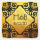 Personalised Gold and Black Damask Wedding Date & Initials Stickers