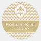 Personalised Gold White Fleur de Lis Chevron Classic Round Sticker