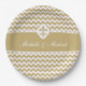 Personalised Gold White Fleur de Lis Chevron Paper Plate
