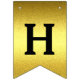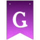 Customisable party bunting banner with black and white template text for 16 letters or numbers; golden and purple retro design; suitable for birthday parties etc.
