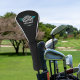 Perfect for dads, grads, retirees or anyone who loves golf, this personalised driver cover in crisp black and vibrant turquoise features a golf ball logo that can be customised with his name for a cool custom look.