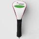 Personalised golf driver head cover gift for golfer. Personalise with custom name. Cute drawing of green with flag and ball.