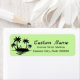 Custom Golf themed Return address labels with tropical palm trees on a beach graphic - great golf envelops and stationary. Create your own Personalised Golf Return Address label set. Displayed is Personalised Tropical Golf Design Return Address label with golfer swinging with golf caddie in tow with tropical palm trees graphic design. Golf course near me and golf turf but you can change/remove it with one click in customisation panel.