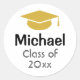 custom graduation favour bag stickers, personalised grad favour bags sticker, graduation cap hat thank you, black and gold for him, high school or college her, envelope seals grad announcement seal, class of 2024 favours university, personalised graduate modern labels uni, graduation party invitation return label, elegant unique name son daughter