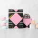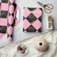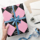Graduation gift wrap featuring creative black and gold cap design on pink background. Edit text to add graduate's name.