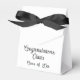 Personalised Tent Favour Boxes comes with your choice of black, white, pink or purple ribbon. You can personalise it to say whatever you want with your choice of font, font colour, etc. Other favour box styles are available.