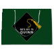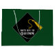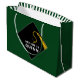 Graduation gift bag featuring classic black and gold cap on a green background. Edit text to add senior grad's name.