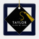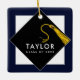 Classic black graduation cap and gold tassel design on navy blue background. Edit text to add graduate's name and senior class year.