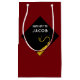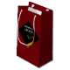 Creative graduation gift bag featuring black and gold cap design on a maroon background. To personalise edit text to add grad's name.