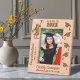 Celebrate your graduate’s big achievement with this personalised laser etched wood photo frame, designed especially for them. This custom picture frame features precision engraving with your graduate’s name, school/College, class year, and graduation icons of grad caps and female graduate throwing her cap in the air, making it a timeless keepsake they’ll treasure for years. The text “Congratulations, you did it” is also customisable. Perfect for high school or college graduation gifts, senior night, or open house decor. This landscape frame is beautifully etched with bold lettering that highlights the graduating class year, while the bottom showcases the graduate’s full name and school in a stunning combination of script and block fonts. Whether you’re a proud parent, family member, or friend, this frame makes a meaningful and elegant gift. Make their moment unforgettable with a personalised graduation frame they’ll cherish forever! Edit text from the product page or to change font style, use the design tool.