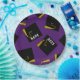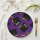 Creative grad party plates featuring classic black and gold graduation caps on a purple background. To personalise edit text to add his or her name and senior class year.