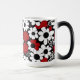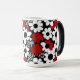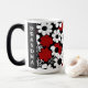 Red, black and white flowers whimsical tiled pattern personalised coffee mug. Add a family member or name in the personalise area.