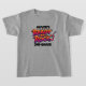 The t-shirt feels and looks great quality, a good thick cotton. It will be a little big for my son, but that means he will be able to wear it and not out grow it too soon. The print was as described on the order when personalised. True size, shape and colour T-shirt- thanks.