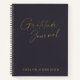 This stylish blank lined gratitude journal has a modern minimalist style with gold text on a dark indigo blue background. Personalise it with your name. Great gift idea.