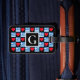 Make your own personalised luggage tags for anyone who loves Greece. Featuring a unique chequered pattern made with the Greek national flag and red hearts on black squares. With a custom text box where you can type in your own initial or any other letter (or number) you might want. Just click to personalise the template and replace the placeholder text with your own. These are great for patriotic Greek people who like to travel, and for people planning a trip to beautiful Greece!