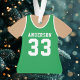 Celebrate your love for basketball with this personalised green basketball jersey ornament. Perfect for commemorating a special season, player, or team, this ornament makes a thoughtful gift for any basketball fan. Customise it with a name and number to create a unique keepsake.