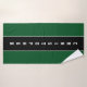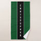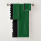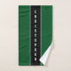 Stylish Dark Green Bath Towel Set with two thin white stripes and a wide vertical black stripe on the centre with custom name on it.