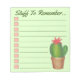 List-style note pad design features an original marker illustration of a prickly green cactus potted plant, and STUFF TO REMEMBER in a fun font. Just personalise with your information.