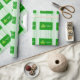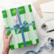 Personalise this cute wrapping paper with the recipient's name. Design has green and white stripes with green text box and happy green frog. Change placeholder text to your message or name.