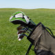 Create a personalised golf head cover with your favourite photos. A fun way to express yourself while playing golf. Add 3 photos. Modern green and black design. Also, makes a great gift. Use the template to create your own personalised golf head cover.