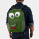 Personalised Green Monster Fun unique backpack from Ricaso - add your own name to this great funny faced monster bag.