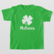 Custom kids shirt design includes a first name monogram (or other text) in white with a shamrock four-leaf clover. Perfect for St. Patrick's Day!
