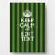 Personalised Green Stripes Keep Calm Your Text Plaque