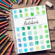 This sketchbook is decorated with a watercolor pattern in shades of green and turquoise.