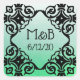 Personalised Green and Black Damask Wedding Date & Initials Stickers