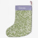 Add a festive touch to your holiday mantle with this modern and elegant vintage William Morris Green Willow Leaves Botanical Pattern Christmas Stocking. Personalise with a name or initial at the top in white calligraphy script lettering on a band of lilac purple.